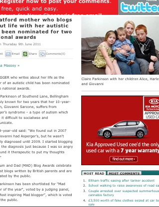 You just don’t expect your blog to end up in the newspapers! Then again, you don’t expect to your blog to be in the running for a national award (especially in two categories)