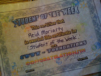 Reid is acing his move to the Adolescent Program at his school. Yesterday marked his first full day upstairs with a new Case Manager and several new teachers. This very intentional, gradual transition has been orchestrated over the past 6 months. With his Student of the Week certificate from downstairs still in the backpack, he was ready!