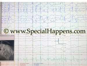 I watched the indicators on the screen. Spike Event. XL Event. Whatever those mean. One in red, the other blue. The telltale increase the moment he went to sleep. Every ten-seconds, an event of some sort. Prior to sleep it was every 30-45 seconds…The sleep…well, was disrupted as normal. No REM that night. In fact, he slept 3 hours. Not for being in the hospital, but because this is what he does. This is how ESES effects him.