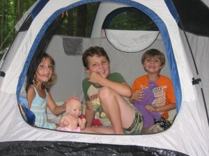 It was written by Emily, a mother of three (presumably the 3 in the tent).