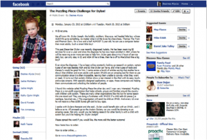 I had to be creative. I made a Facebook event called The Puzzling Piece Challenge for Dylan and sent it out to just family and close friends. It was a huge hit. By day three, Melissa called me telling me I was a “rock star!” She explained that Dylan already had 34 pieces bought and she couldn’t believe it!