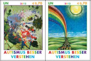 The United Nations Postal Administration (UNPA) has issued stamps and the first day covers on 2 April 2012 in recognition of World Autism Day. The stamps and the artists who designed them will together raise awareness about this important global cause.
