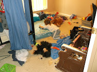 Trust me, you don’t want to see the rest. While trying to clean that up, kids ran wild and Alex, looking to get a giggle, threw the hamster cage in the floor. The hamster survived, all of the bits inside the cage went flying like someone busting open a shaken up soda can. All evening I’d start something and they’d hit somewhere else. I never could get a darned thing done.