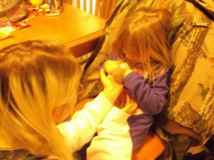 As soon as I hit “publish”, I mean the split second I took my finger off of the button, the Goofy one comes in crying. His brother won’t play with him. fine. Play with Alex. “But Alex won’t talk. and he just walks away. I don’t want to play with someone who just walks away.” just then, Alex walked away. Right straight over to a twisty tied 5 lb bag of dry beans. He shook it good, busted it open and threw it down the stairs. followed quickly by the rest of the box of things waiting to be put away.