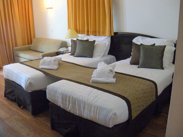 Since the property’s room occupancy was limited to three persons in a room and we were a family of four we had to book two connecting rooms. As always, we requested a feather free quiet room for our allergies and our son with autism. Upon our arrival after a five-hour flight from London, we were checked in and given the room keys within minutes. Moreover, we were thrilled to see the staff had treated us to a small liquer bottle and chocolates.