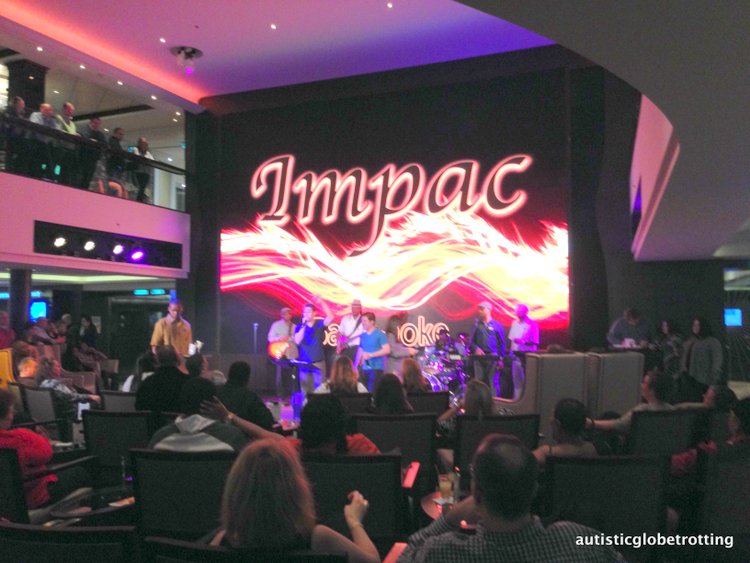 During our trip, this event took place on the small Impact stage which was surrounded by a sizeable audience. The competition’s emcee kept the hits rolling right along, and the group of backup musicians helped add just the right note to the proceedings. Travelers that plan on showing off their talents should keep in mind that this family friendly event attracts lots of attention.Therefore, a stage debut here is probably not for the faint of heart even though the crowd was incredibly respectful of the impromptu performers.
