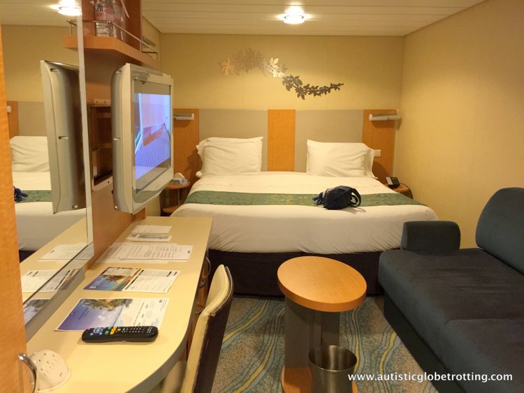 We saw a few options for cabins, and we arranged beforehand to get an inside cabin, ideally suited to families that deal with autism. Because it is situated in an inside corridor, it almost makes a labyrinth that is confusing for a child to navigate. Therefor, it is more difficult for them to get lost if they get away from you.