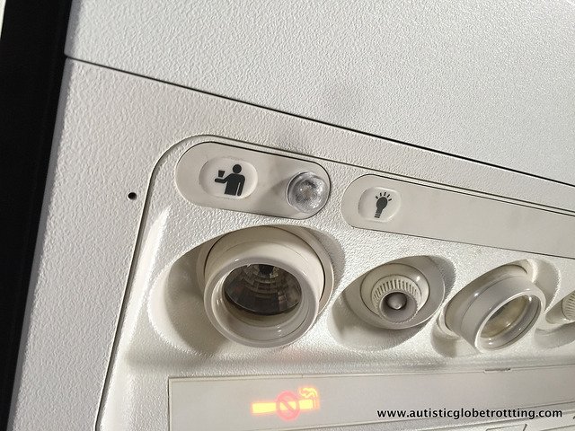 Take his shoes off when you first board the plane and place them under the seat in front of you. You could also bring a special bag to put them inside of, and then store them in the overhead bin. If you take them off when you first board you can prevent him from taking them off and throwing them or possibly having a tantrum because he cannot get them off easily in the cramped quarters.2. My son loves buttons. I’m afraid he’ll continually press the buttons on the airplane. Is there any way to mitigate this?