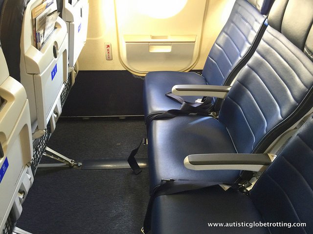 Ask for a bulkhead or aisle seat and insist on one if possible. Should you not get the seat you requested, carry autism information cards with you to inform your seat neighbors. If your child truly makes the flight unpleasant for the person in front, you could offer to buy them a cocktail or internet service while in flight, with a sincere apology. Kindness goes a long way!