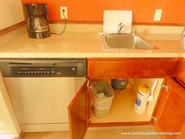Like all Residence Inns properties, this too had a kitchenette with a dishwasher, cooktop, big microwave, toaster, coffee maker, and fridge. Families have the option to request that the refrigerator is stocked on your arrival. Also, for an additional payment, groceries can be replenished in the kitchenette. This kitchen was also fully furnished with crockery, cutlery, pots, pans and other necessary cooking utensils. The hotel also provides a laundromat service.