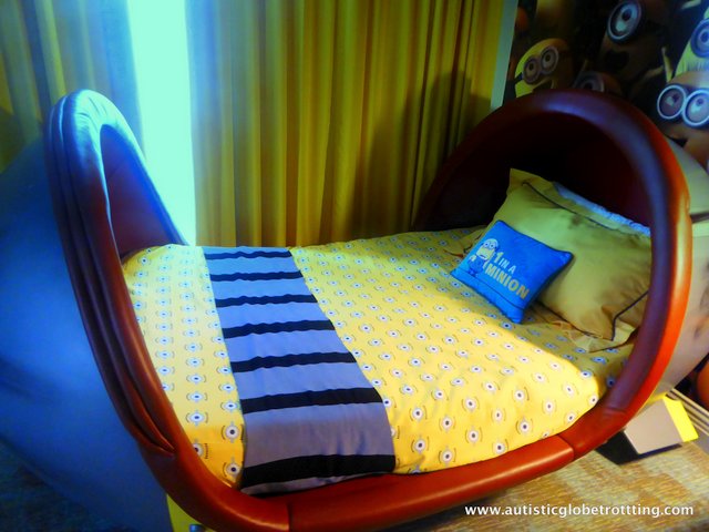 Meanwhile, the kids’ suite, featuring a bright color scheme, had the lovable minions from the Despicable Me series emblazoned on every available surface. The entrance door to the room looked like the vault door in the actual movie. In the room, we noted the two specially shaped pod beds. The suite additionally featured a desk area where youngsters could set up their computers to play games or talk on Skype with friends. There was also a stylish lounge looked like it was taken from the ‘Despicable Me’ movie set.