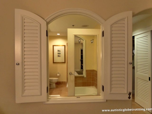 As mentioned before our room had a set of wooden shutters that opened up into the bathroom area. We thought this feature was particularly helpful for parents wanting to keep an eye on their kids.