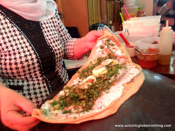 Pronounced with a guttural ‘h’ at the back of the throat, the Sabih is basically a Middle Eastern sandwich consisting of hummus, fried eggplant and sliced hard-boiled egg. It can be served between two slices of bread of your choice, or a pita pocket or in a wrap. Also, one can add ther toppings like a sour cream or spicy harissa, and it makes a very filling and tasty vegetarian meal.