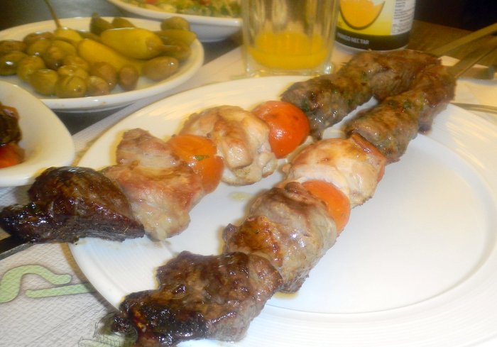 Known as kebabs and kebobs in other parts of the world, in Israel, they are called Shipudim – cubes of meat – typically chicken thigh meat, beef or lamb -skewered onto sticks of wood or metal and barbecued on an open fire. In the open-air markets or restaurants and from street-food vendors, Shipudim combine Middle Eastern and Mediterranean culture. One can get Shipudim served with salads and pita bread as a substantial midday or evening meal.