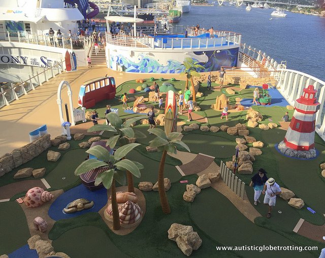 If possible, see if you can arrange the activities before or after the specified hours to avoid crowds. Also, be sure to ask the staff how this is best done. As you know, kids with autism do better with individual attention away from crowds. From our experience, a good time to try onboard activities is when the ship is in port, and many guests are on land.