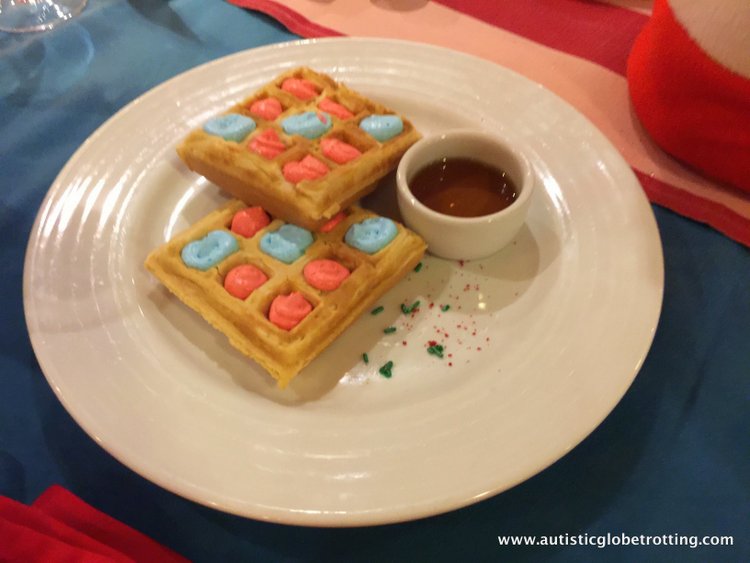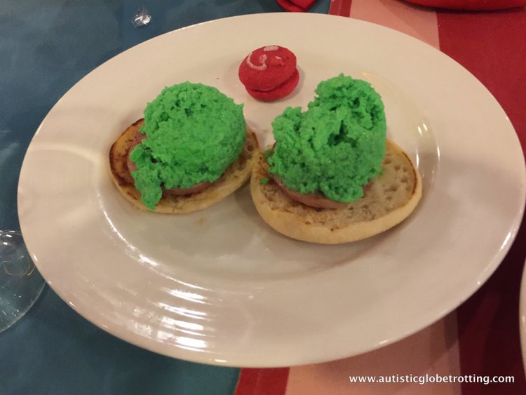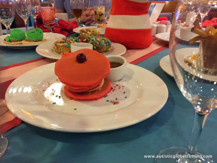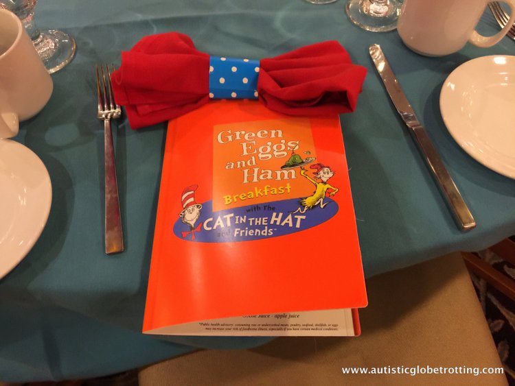 As other character breakfasts, this one too had guest appearances by Thing One and two, Sam I am and the Cat in the Hat.While the two ‘Things’ did walk around, Sam and the Cat stand in one spot and guests are expected to line up to get a selfie with them.