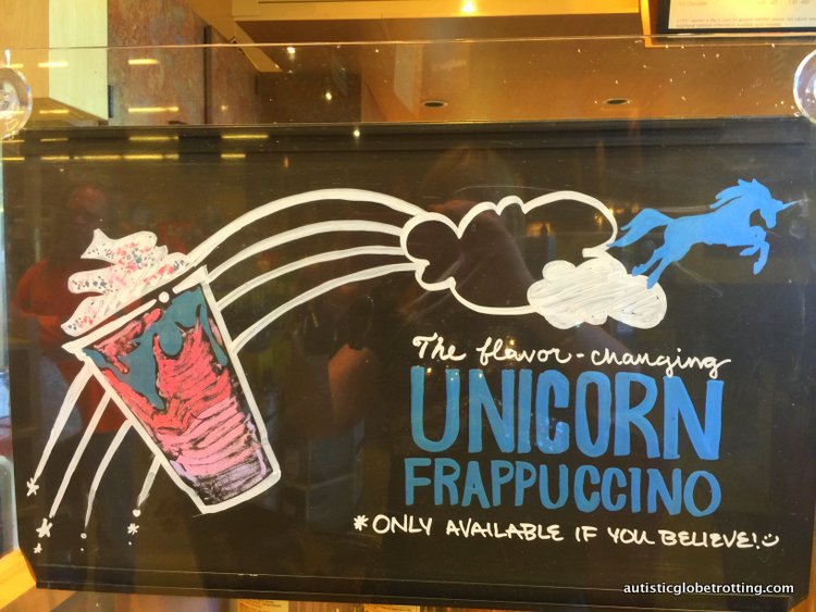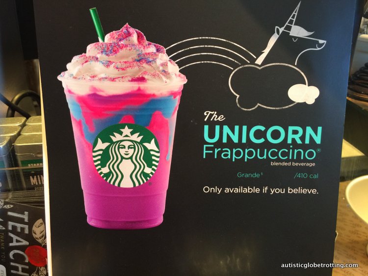 We usually go when we travel internationally (some drinks do taste different) and when they advertise a new drink.So naturally, it was time to go since we were curious about Starbucks’ new unicorn frappuccino.