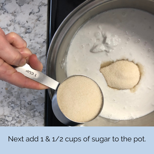 Next, add 1 & 1/2 cups of sugar to the pot.