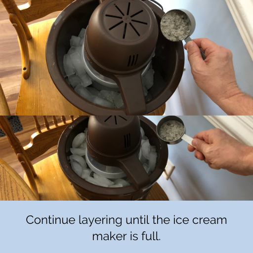 - Roughly 1 1/2 bags, 7 pounds each, of ice depending on your ice cream maker’s capacity