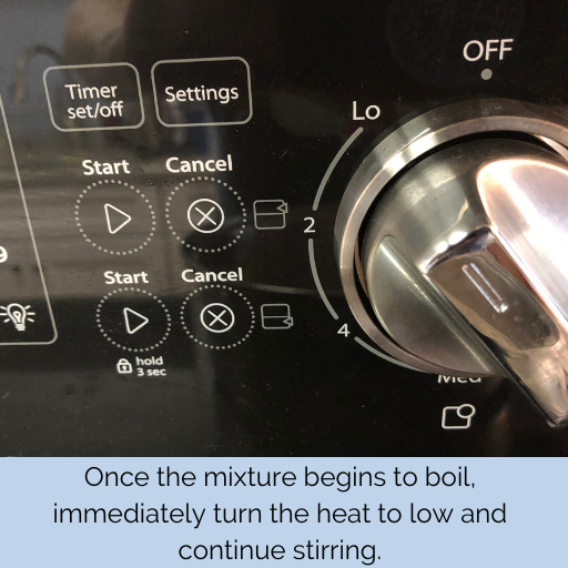 Once the mixture begins to boil, immediately turn the heat down to low.
